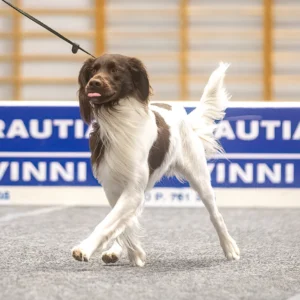 ja kaksi metsästyskoiraa, pienimunsterinseisoja Ahki ja